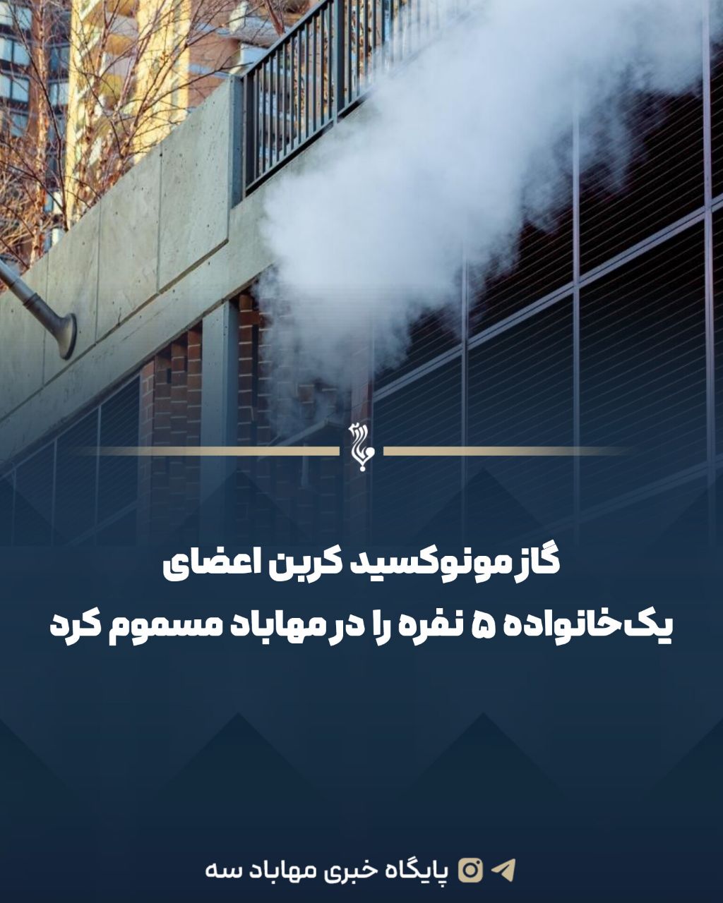 گاز مونوکسید کربن اعضای یکخانواده ۵ نفره را در مهاباد مسموم کرد
